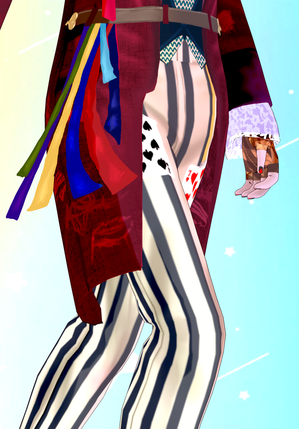 Mad Hatter Cosplay Set includes waistcoat, shirts, spools of threads gear, stripe pants, mix-match socks, shoes, gloves, hat and face paint