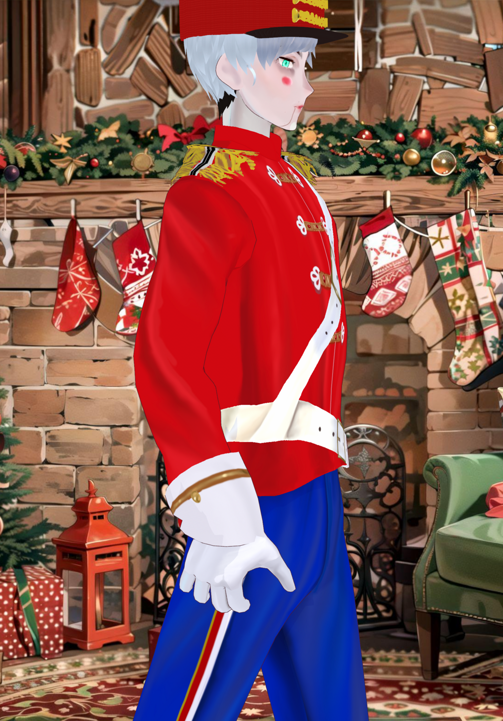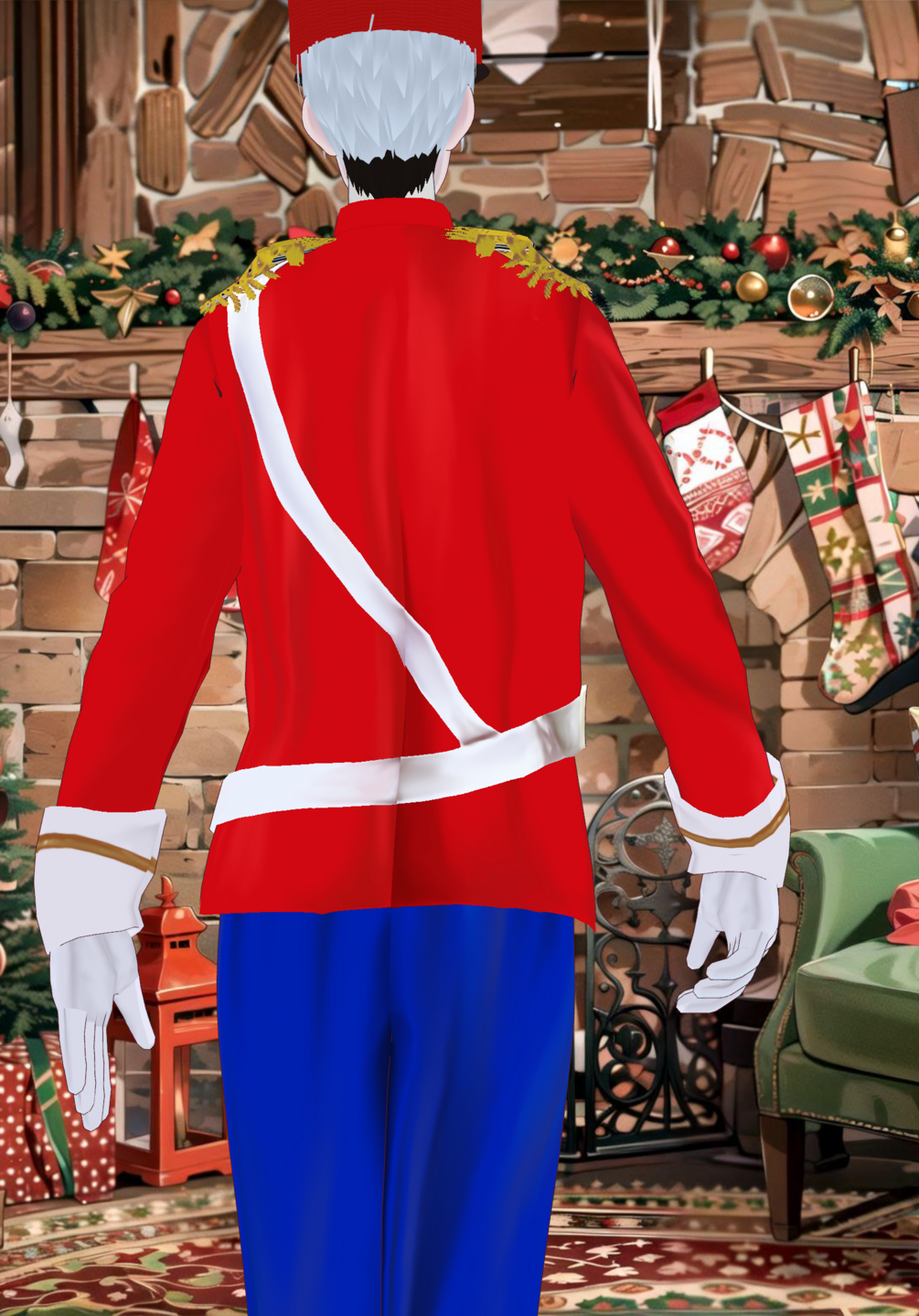 Protect St. Nicholas while he delivers his goodies as a soldier. (toy soldier). Set includes: Uniform shirt jacket, uniform belt sash, uniform pants jogger, boots, soldier cap, uniform gloves, and toy soldier makeup.